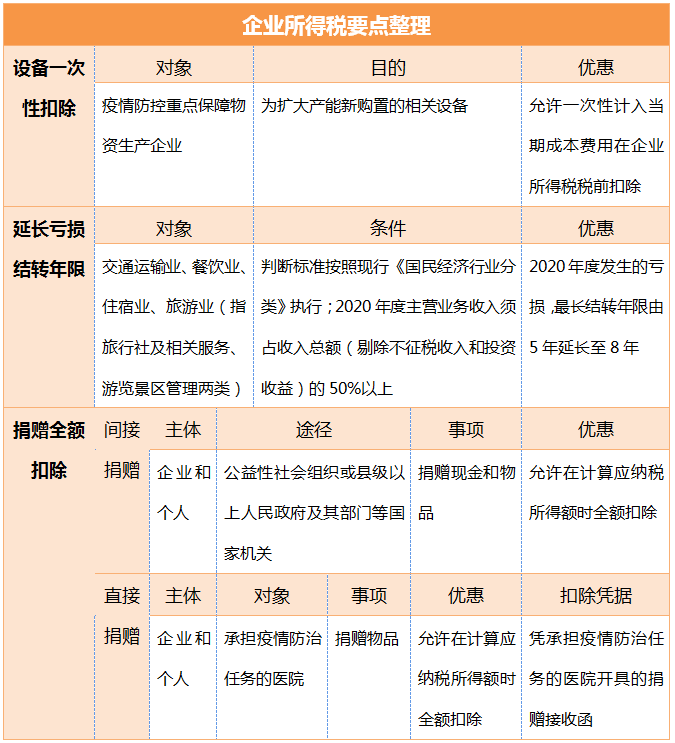 ②企业和个人直接向承担疫情防治任务的医院捐赠用于应对新型冠状病毒感染的肺炎疫情的物品,允许在计算应纳税所得额时全额扣除。