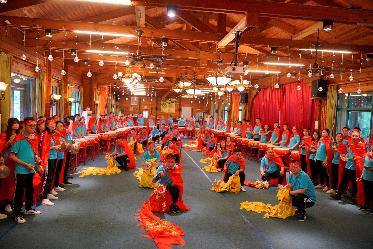大家来到了坐落于太湖第一岛的太湖牛仔度假村。修整片刻,尤尼泰(上海)全体员工便进入了紧张的“战鼓”训练。几个小时的挥汗,从最初的杂乱无章,直至整齐划一的鼓声阵阵,离不开教练的训练有素,也更是尤尼泰团队勠力同心的真实写照。伴随着一首《中国龙》响起,战鼓擂动,舞龙盘旋。正如歌词中的“普天龙的儿女,拧成一股绳”,身为中华儿女,我们无比自豪。作为尤尼泰人我们深感荣幸,能在这样一个团结友爱的大家庭里共同进步成长。