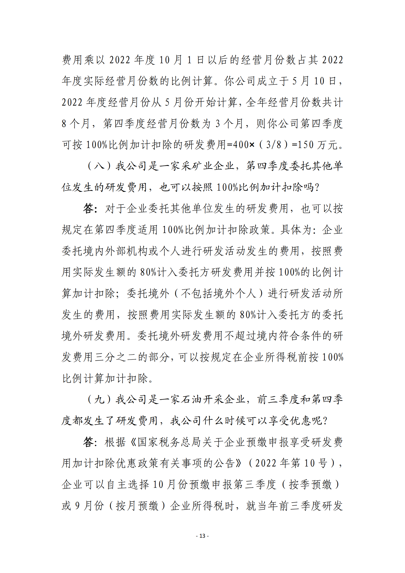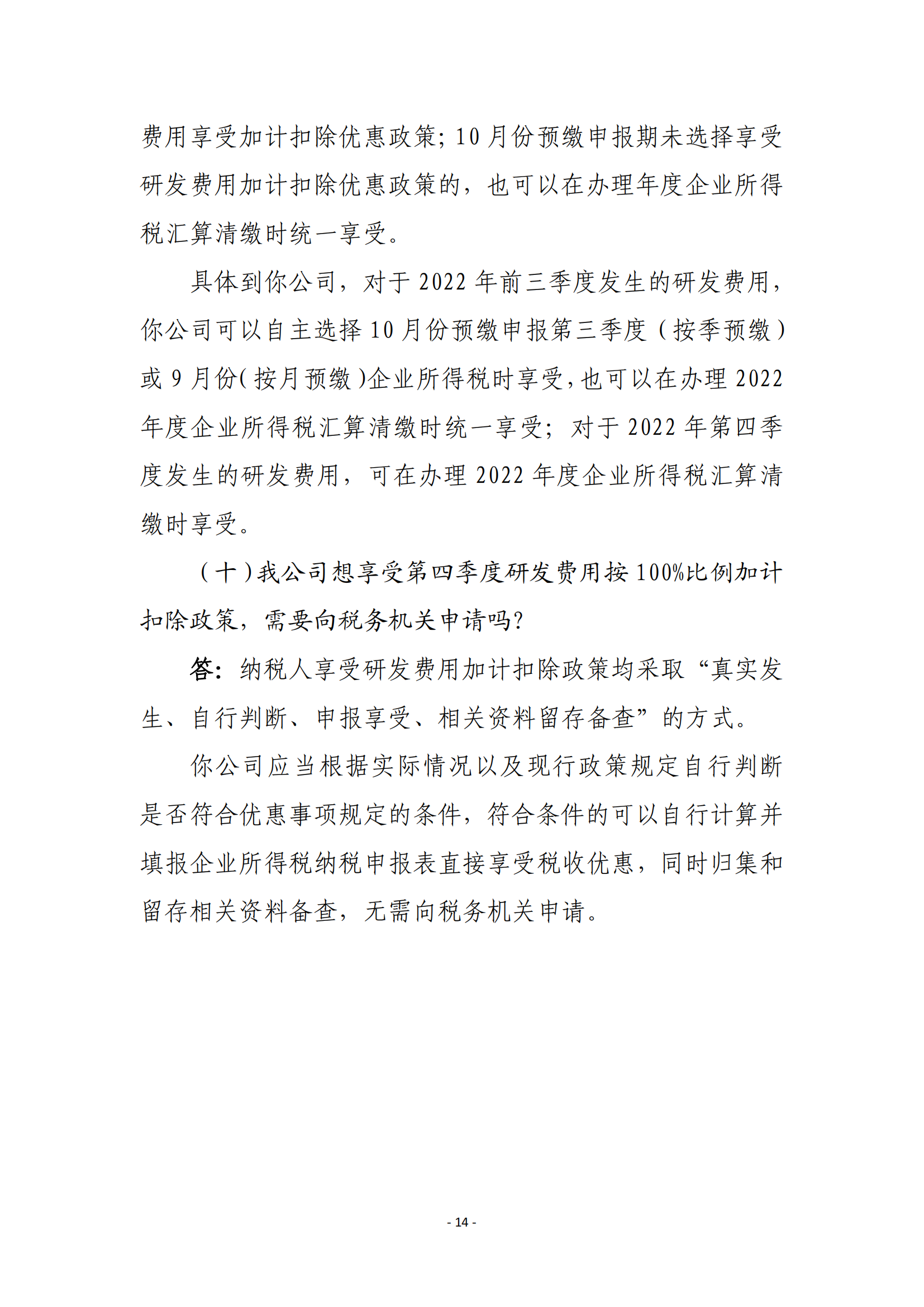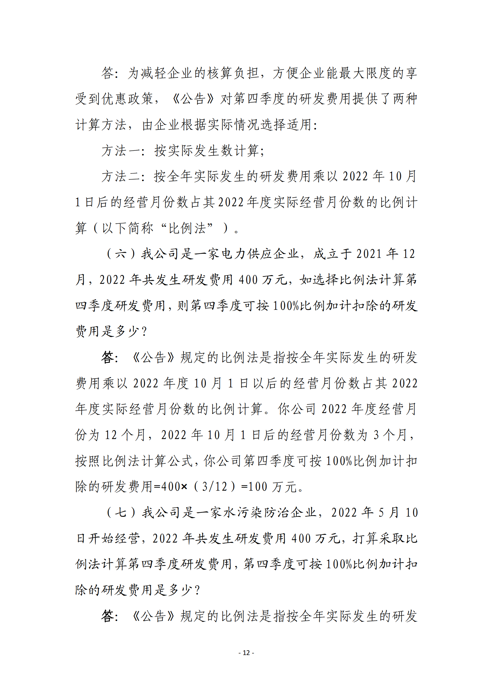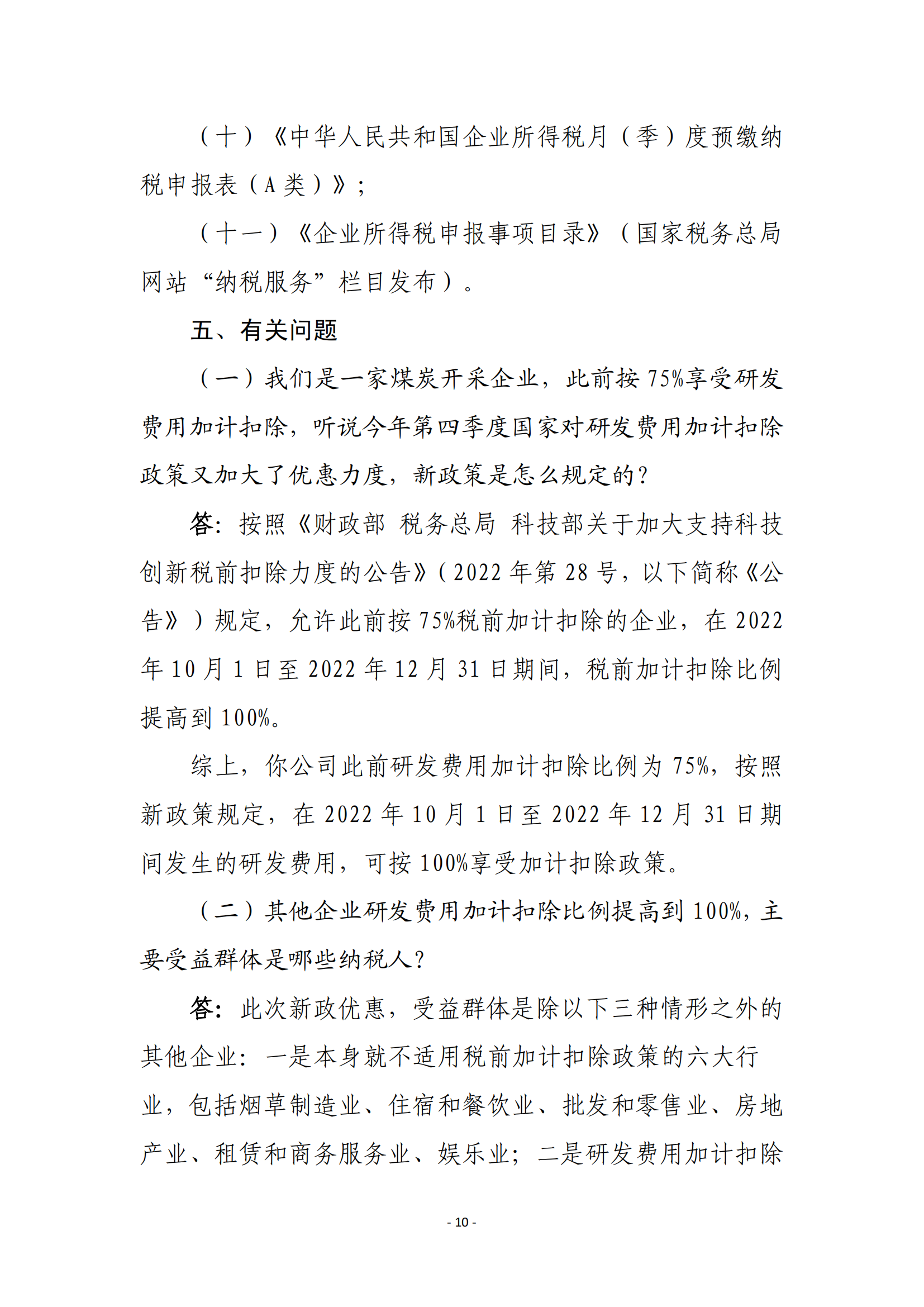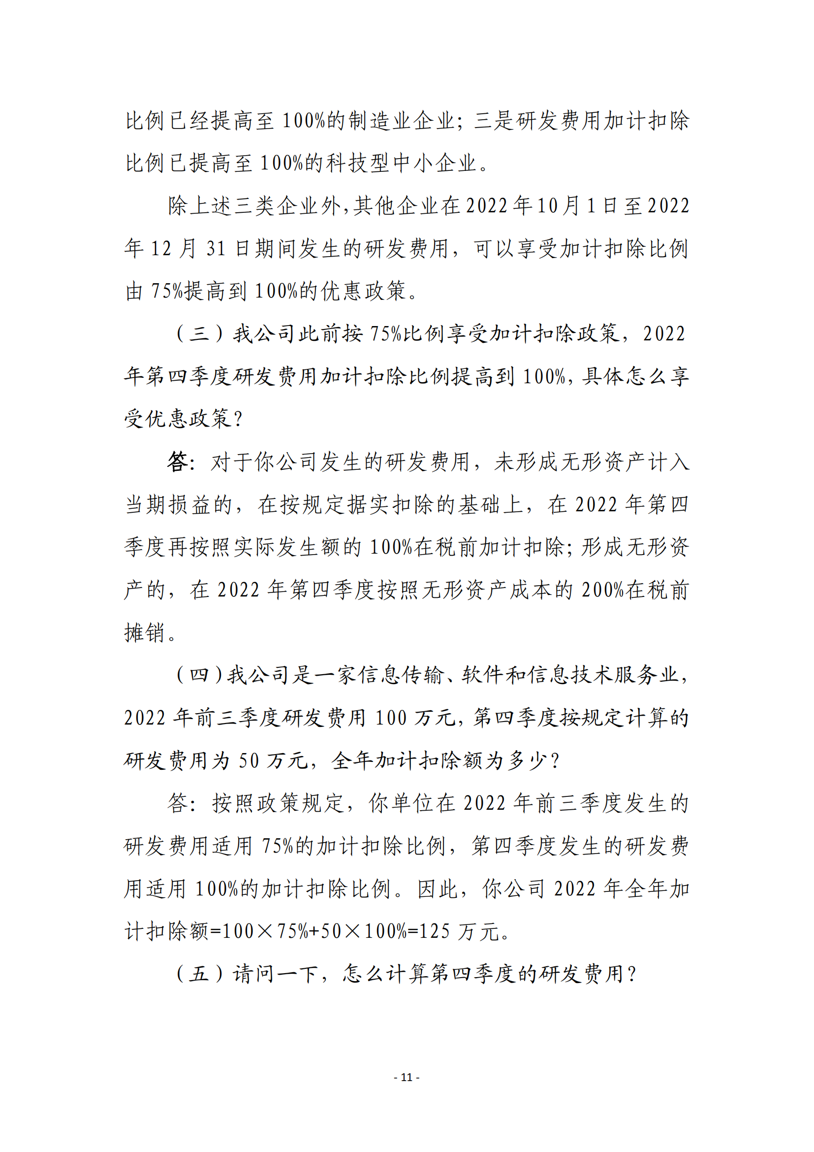 二、现行适用研发费用税前加计扣除比例75%的企业,在2022年10月1日至2022年12月31日期间,税前加计扣除比例提高至100%。